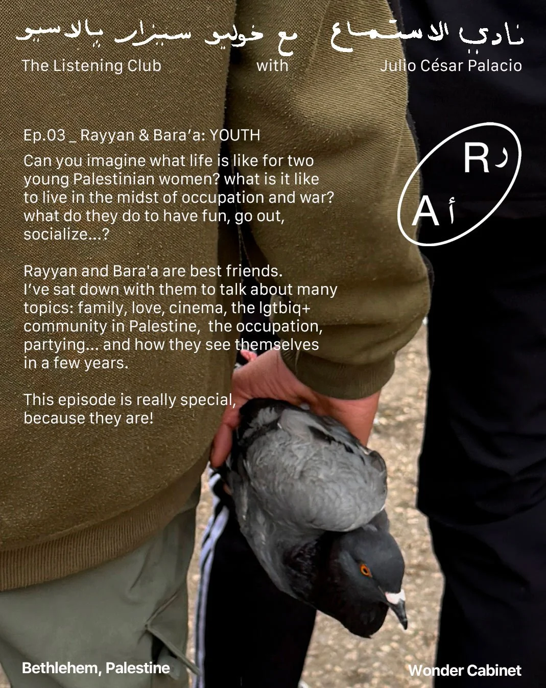 While in Palestine in the spring of 2025 as a resident at Radio Alhara, I started a new program called "The Listening Club," which was broadcast live weekly every Thursday from Bethlehem during my stay in Palestine. The program now continues monthly with the same focus: LISTENING!
