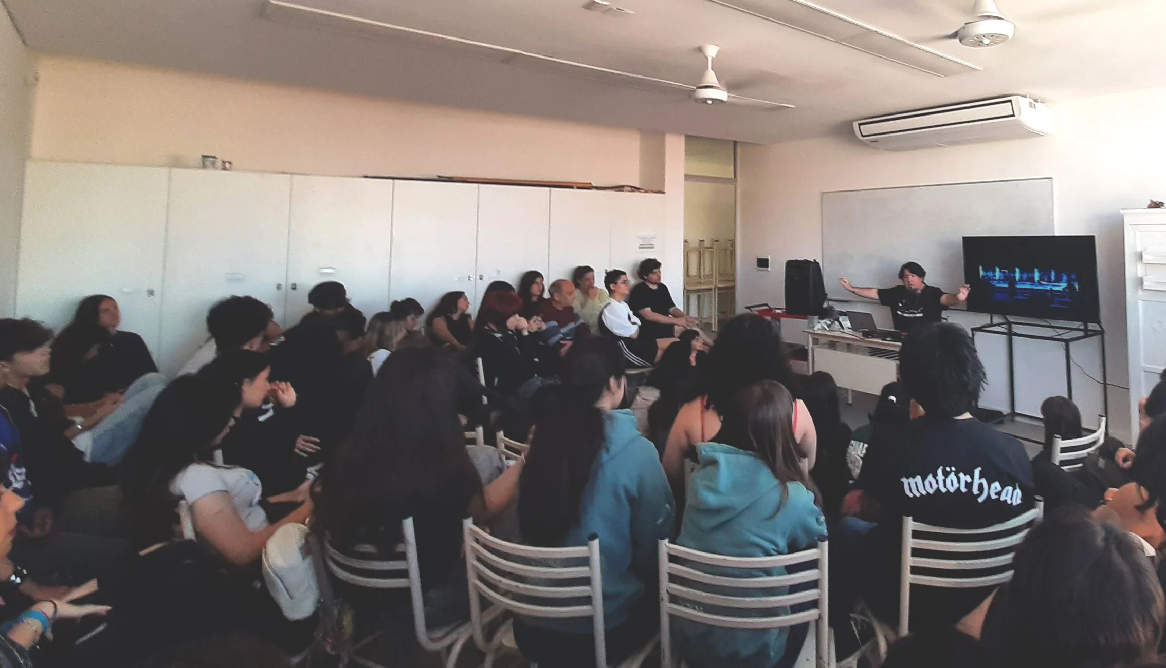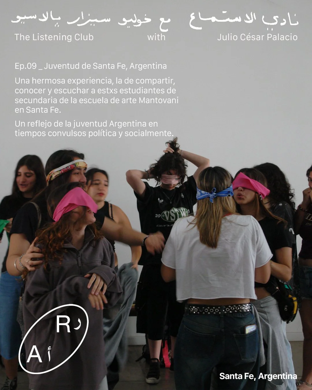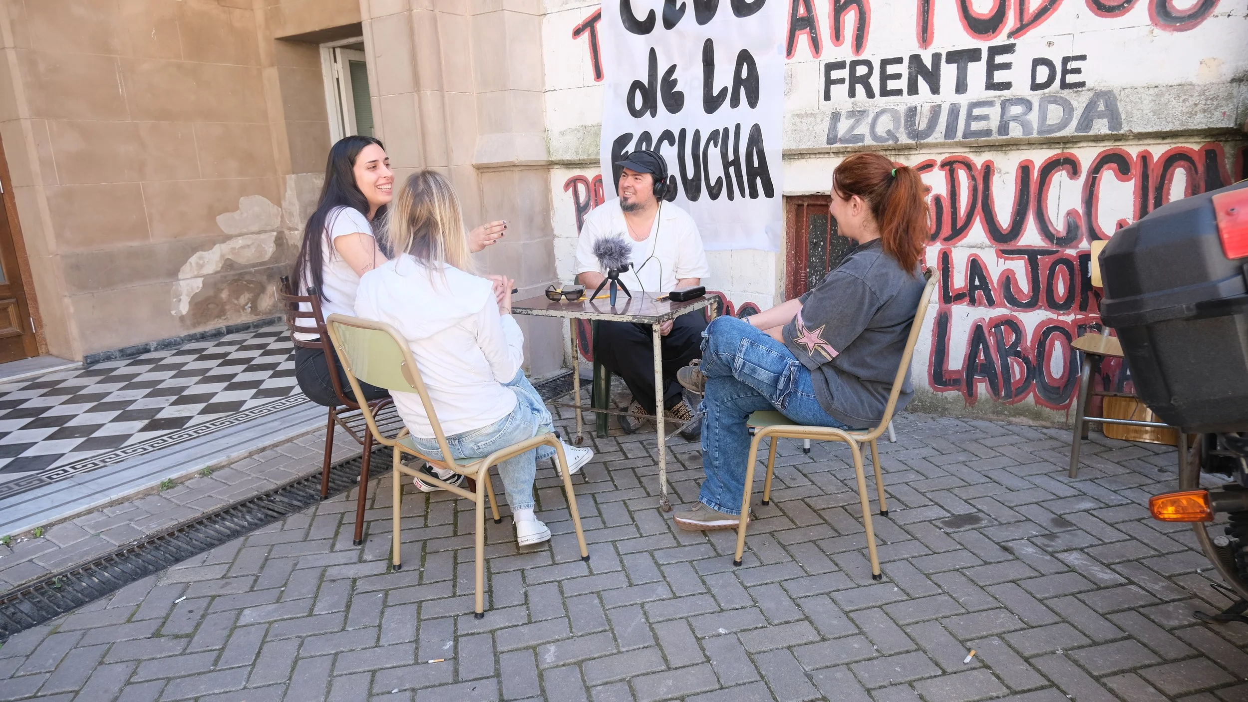 Once in the city of Rosario, I had the opportunity to sit down and talk and establish a meeting point for the Listening Club in the courtyard, thanks to the invitation of professors and the collaboration of the Crudo Arte Contemporaneo gallery. On this occasion, the participants were first-year students of a wide range of ages, from approximately 20 to 55, with very different personal histories, so the conversation was very focused on the defense of public education and future job opportunities, mental health, family, etc.
